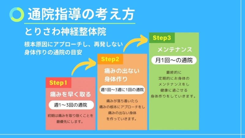 とりあえず通い続けるのではなく、「もう大丈夫」と自信を持って日常生活を送れる状態を目指します。