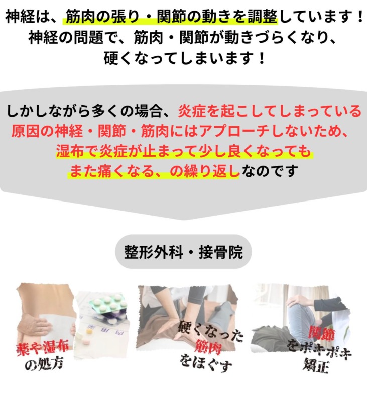 なぜ湿布や注射、他の整骨院で改善されなかった