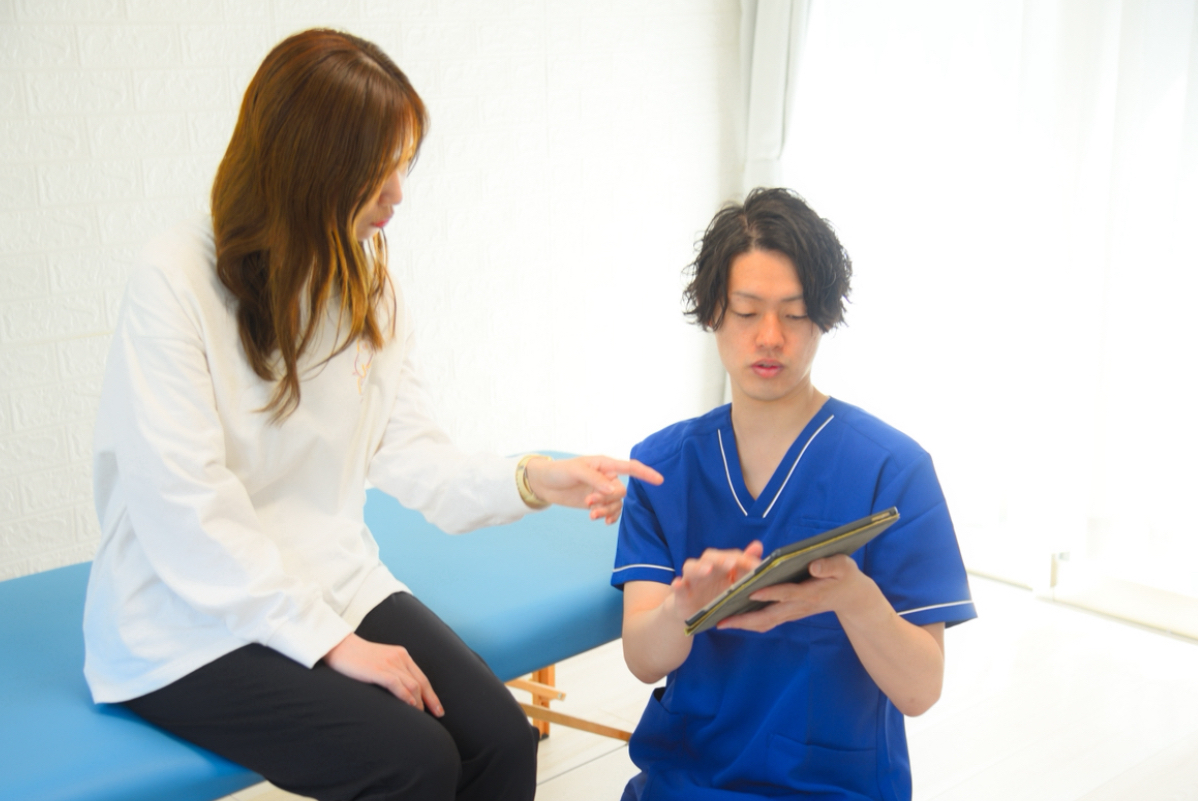 現在の身体のお悩みや日常生活で困っていることなどを詳しくお伺いします。話を聞かずにいきなり施術するこはありませんので、なんでもご相談ください。